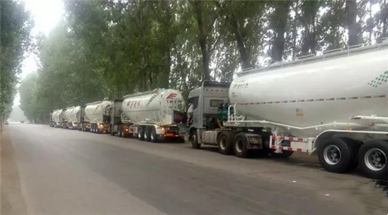 圖中就是西南某地采購(gòu)的一批20臺(tái)粉罐半掛車正在發(fā)車;據(jù)了解,訂購(gòu)該批車輛的是凌宇的老客戶,公司老板郭總可以說(shuō)是凌宇的鐵桿粉絲,2003年采購(gòu)了批凌宇的散裝單車,在此后的十幾年中,多次采購(gòu),但選擇的車輛廠家從未更改,目前該公司已有近100臺(tái)罐車,清一色的全是凌宇的。