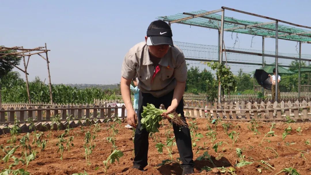 2個(gè)小時(shí)后,辣椒、茄子、黃瓜、豆角等蔬菜秧苗遍布田間,凌宇“初心田”初具規(guī)模。大家相約今后定期到菜地看一看、澆澆水,等到蔬菜成熟時(shí),一起分享收獲的喜悅。